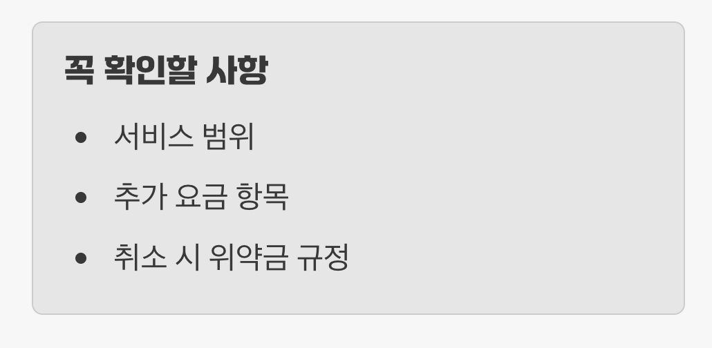 수많은 업체를 만나 상담하고 계약하는 과정에서, 복잡한 계약서 내용을 꼼꼼히 읽어보지 않고 서명하는 실수를 저지르기 쉽습니다. 특히 ‘추가 비용’이나 ‘환불 규정’ 같은 중요한 조항들을 놓치게 되면, 나중에 예상치 못한 분쟁이나 금전적 손실로 이어질 수 있습니다.