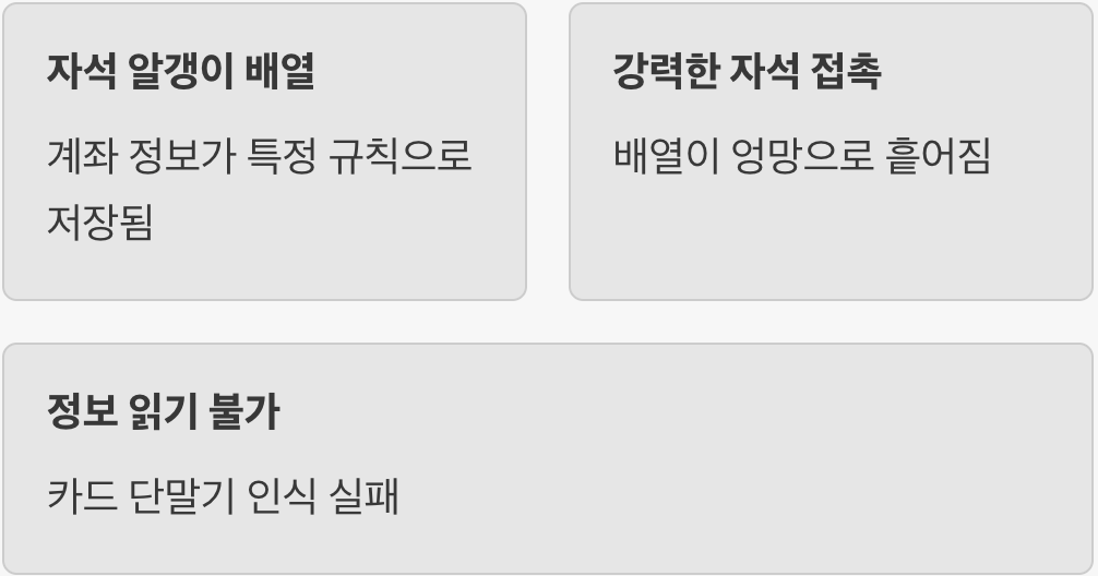 힘센 자석이 다가오면 얌전히 줄 서 있던 알갱이들이 엉망진창으로 흩어지게 됩니다. 순서가 뒤죽박죽 섞여버려 카드 단말기가 정보를 읽을 수 없는 상태가 되는 것이죠. 이를 방지하기 위한 유일한 해결책은 자석과 카드를 분리하는 것입니다. 특히 가방의 자석 잠금장치나 머니 클립에 카드가 직접 닿지 않도록 주의해야 합니다. 요즘 나오는 IC 칩(금색 네모)은 자석의 영향을 받지 않으므로, 마그네틱이 손상되었다면 IC 결제를 이용하는 것이 대안이 될 수 있습니다.