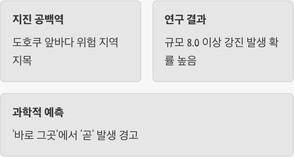 동일본 대지진이 발생하기 수년 전부터, 일본의 여러 지진 연구 기관들은 바로 이 도호쿠 앞바다 지역이 매우 위험한 ‘지진 공백역’이며, 규모 8.0 이상의 강진과 거대한 쓰나미가 발생할 확률이 매우 높다는 연구 결과를 연이어 발표했습니다. 비록 ‘3월 11일’이라는 날짜를 특정하지는 못했지만, ‘바로 그곳’에서 ‘곧’ 엄청난 일이 벌어질 것이라는 과학적 예측은 이미 존재했던 것입니다.