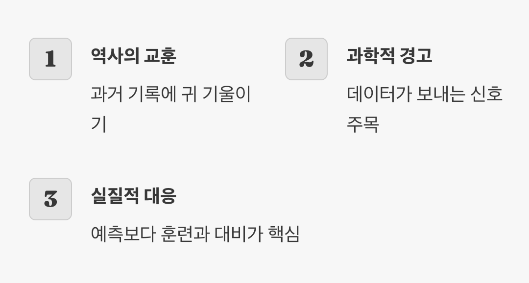 동일본 대지진의 예측 사례들을 되짚어보면, 우리는 한 가지 중요한 교훈을 얻을 수 있습니다. 신비로운 예언이나 초자연적인 징조에 기대기보다, 과거의 역사가 남긴 기록과 현대 과학이 보내는 데이터에 귀를 기울이는 것이 훨씬 더 중요하다는 사실입니다.
