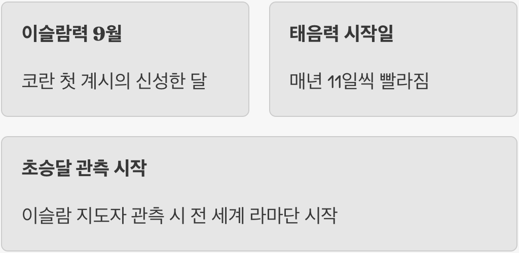 라마단 날짜가 해마다 바뀌는 이유와 이슬람력에 대한 이해를 돕는 설명입니다. - [국제칼럼] 이슬람 단식월 '라마단' 의미 - 경향신문