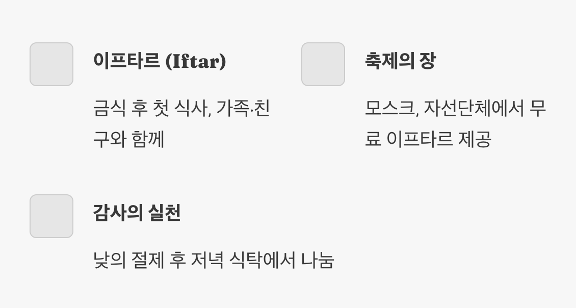 하지만 그 친구를 통해 알게 된 라마단은, 단순히 굶주림을 참는 기간이 아니었습니다. 결론부터 말씀드리자면, 라마단은 육체의 허기를 통해 영혼의 양식을 채우고, 가난한 이웃의 고통을 함께 느끼며, 공동체와 신에 대한 믿음을 더욱 단단하게 만드는, 세상에서 가장 성스럽고 의미 있는 ‘정신적 훈련’의 시간입니다.