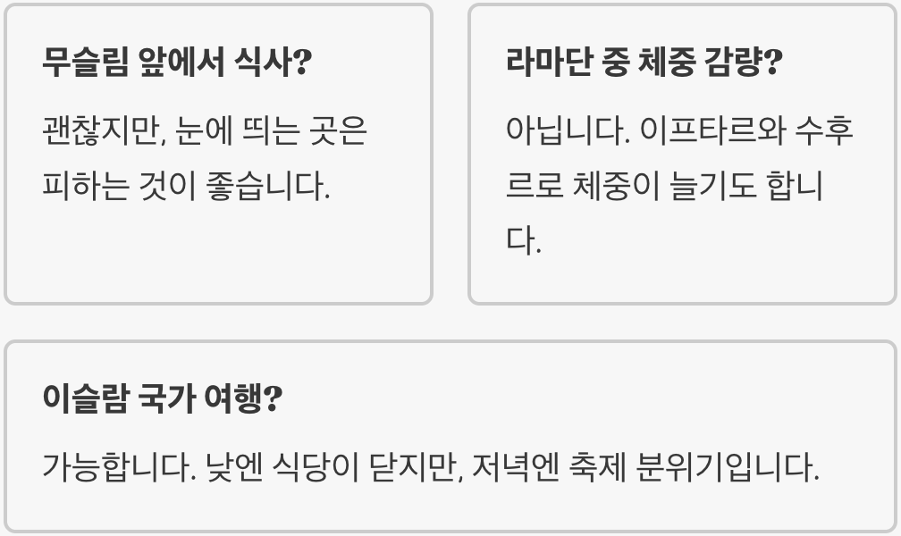 Q. 라마단 기간에 이슬람 국가를 여행해도 괜찮을까요?