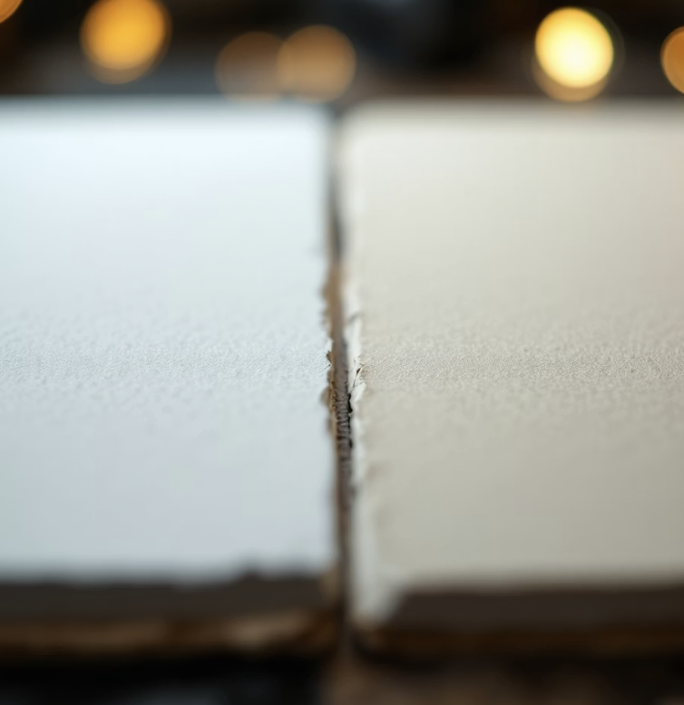 반면 모조지는 펄프 원료 그대로의 질감을 살린 비도공지(Uncoated Paper)입니다. 표면이 미세하게 울퉁불퉁해서 빛이 닿았을 때 여러 방향으로 흩어지는 난반사가 일어납니다. 덕분에 우리 눈에는 종이가 은은하고 부드럽게 보이게 됩니다. 눈의 피로를 해결하고 싶다면 노트나 문제집을 고를 때 반드시 표면이 번들거리지 않는 무광택 재질을 선택하는 것이 현명한 방법입니다.