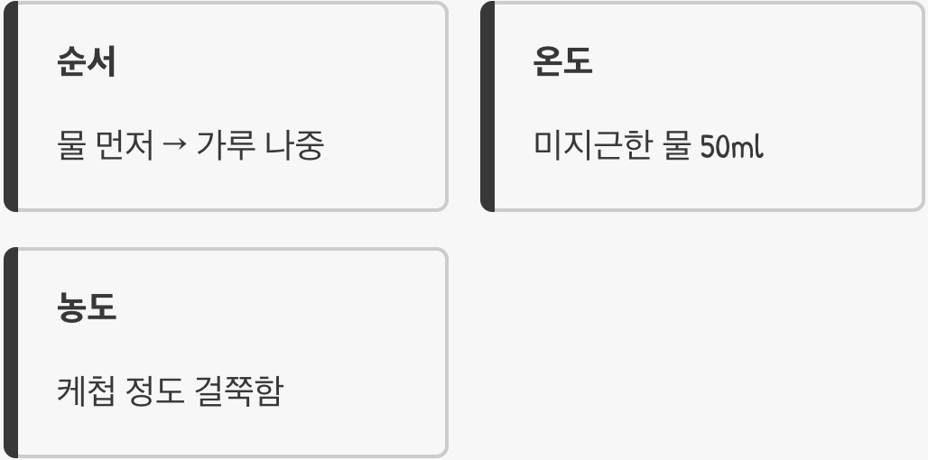 가루와 물의 황금 비율 맞추기