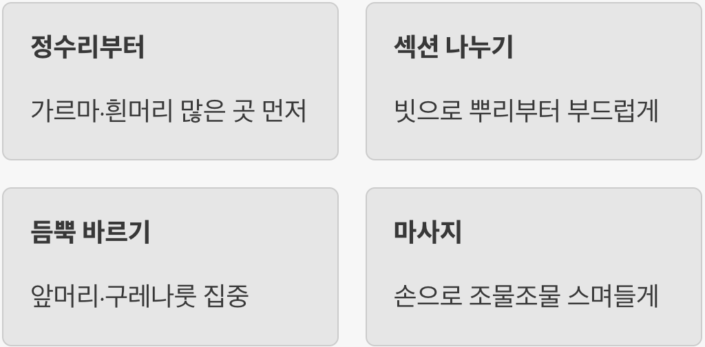 정수리부터 꼼꼼하게 바르는 기술