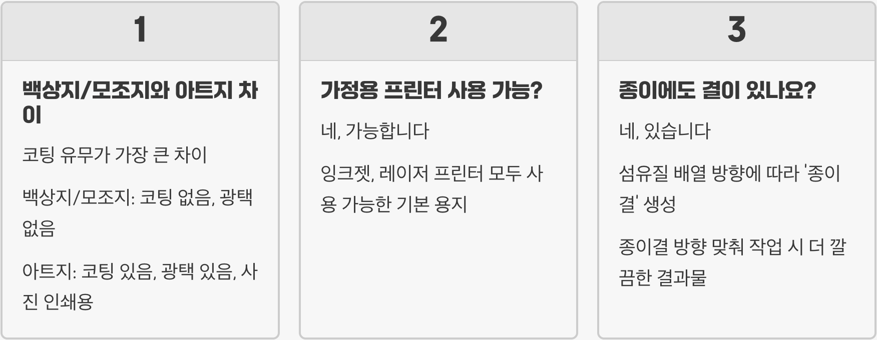 Q. 백상지/모조지랑 아트지는 뭐가 다른 건가요?