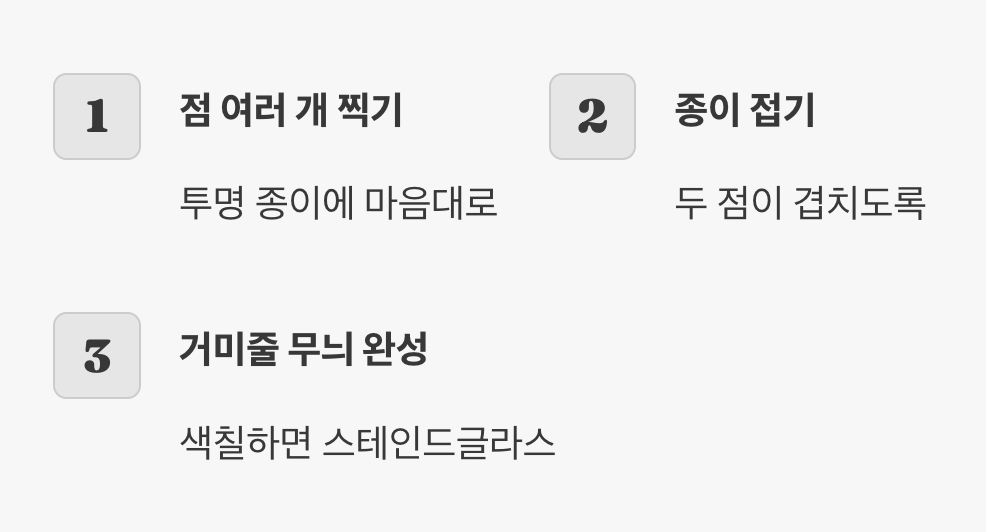 모든 점이 서로 만나도록 이리저리 접다 보면 어느새 멋진 거미줄 같은 무늬가 완성됩니다. 이 활동은 손을 직접 움직이며 도형의 성질을 체득하게 해주는 훌륭한 해결책입니다. 완성된 칸마다 서로 다른 색깔을 칠하면 스테인드글라스처럼 아름다운 작품이 탄생합니다. 수학 시간이 미술 시간으로 변하는 순간, 아이들의 눈빛이 달라질 것입니다.