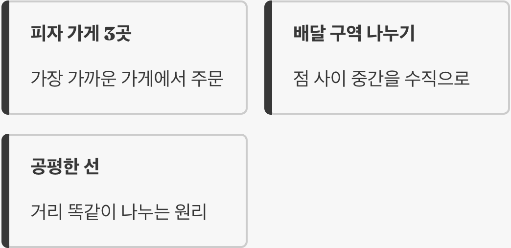 이 도형의 원리를 가장 쉽게 이해하는 방법은 '땅따먹기'나 '배달 구역 정하기' 게임을 하는 것입니다. 예를 들어 우리 동네에 피자 가게가 세 군데 있다고 상상해 봅시다. 사람들은 배가 고프니 무조건 가장 가까운 가게에서 시켜 먹으려고 할 것입니다. 그렇다면 지도 위에 가게 위치를 점으로 찍고, 각 가게가 담당해야 할 구역을 어떻게 나누면 좋을까요?