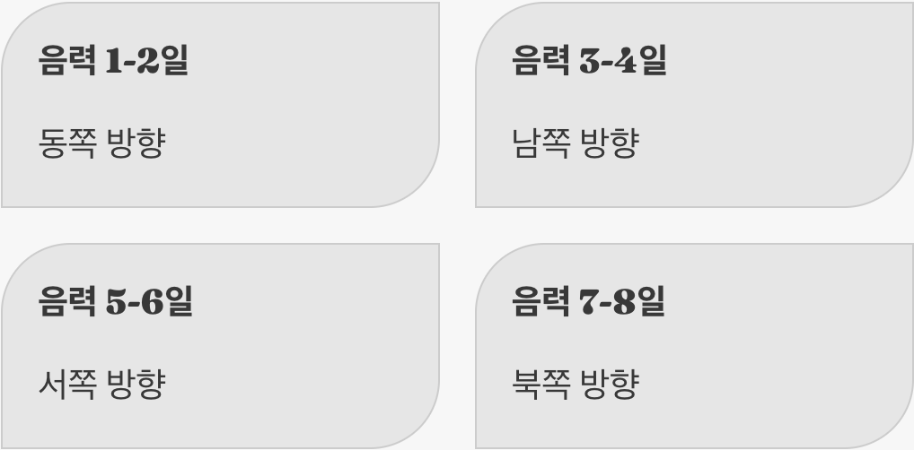 그렇다면 이 나쁜 기운은 언제, 어디로 움직이는 것일까요? 놀랍게도 우리 조상들은 이 귀신들의 동선을 음력 날짜를 기준으로 아주 체계적으로 정리해 두었습니다. 마치 귀신들의 ‘출근 스케줄표’처럼 말이죠.