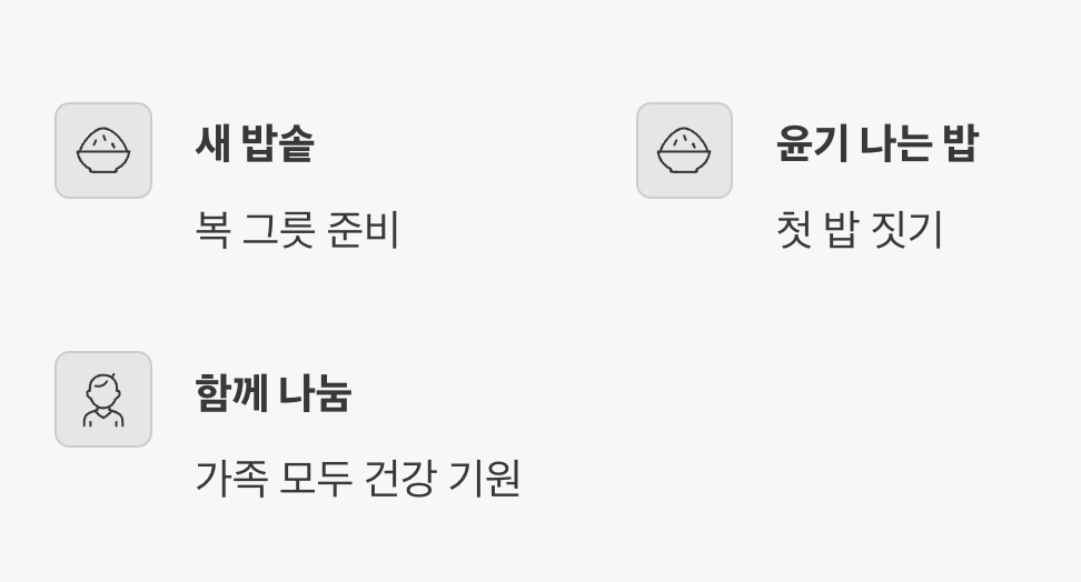 이 복맞이 의식을 완벽하게 마무리하는 마지막 단계가 있습니다. 바로 새 밥솥으로 ‘첫 밥’을 짓는 것입니다. 새로 들인 밥솥으로 윤기가 자르르 흐르는 흰쌀밥을 지어, 온 가족이 함께 나누어 먹는 것까지가 이 풍습의 완성입니다.