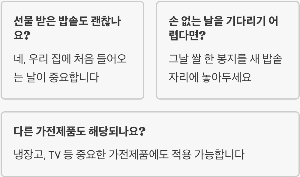 Q. 꼭 새 밥솥을 살 때만 해당되나요? 선물 받은 밥솥도 괜찮나요?