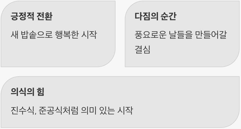 이는 새로운 복 그릇에 담긴 좋은 기운을 가족 모두가 함께 나누고, 앞으로도 이 밥솥에서 지은 밥을 먹으며 모두가 건강하고 화목하기를 기원하는 마지막 염원의 표현입니다. 이처럼 작은 의식 하나하나에 담긴 따뜻한 마음을 이해할 때, 우리는 이 오래된 전통이 주는 진짜 축복을 온전히 누릴 수 있을 것입니다.