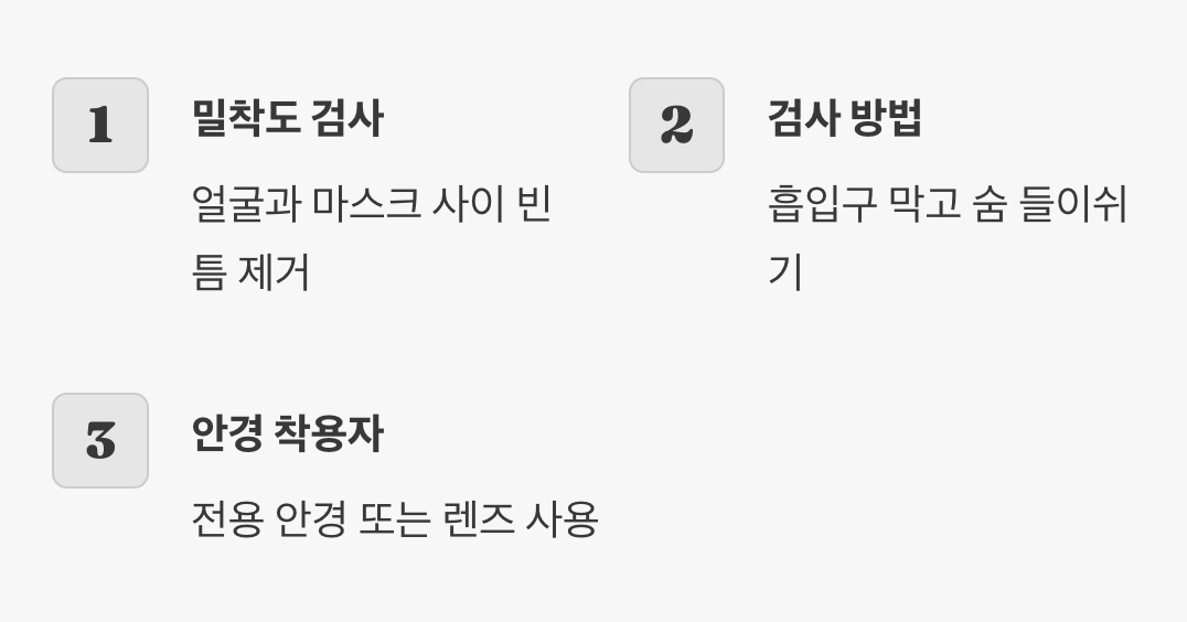 또한 안경을 쓴 작업자는 안경다리 때문에 틈이 생길 수 있으므로, 마스크 전용 안경을 쓰거나 콘택트렌즈를 사용하는 것이 좋습니다. 귀찮더라도 착용 전 1분의 점검 시간이 위급 상황에서 나를 살리는 가장 확실한 보험이 된다는 사실을 잊지 마세요.