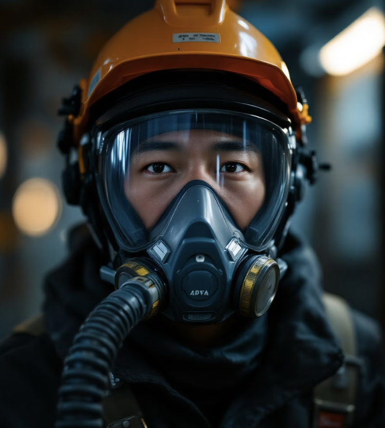 아무리 좋은 장비라도 제대로 쓰지 않으면 소용없습니다. 마스크를 썼을 때 얼굴과 마스크 사이에 빈틈이 생기면 그 틈으로 유독 가스가 들어올 수 있습니다. 끈을 조절하여 얼굴에 딱 맞게 밀착시키는 '밀착도 검사'를 반드시 수행해야 합니다. 손바닥으로 공기 흡입구를 막고 숨을 들이쉬었을 때 마스크가 얼굴 쪽으로 쭈그러들면 잘 착용된 것입니다.