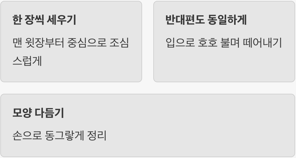가장 중요하고 집중력이 필요한 단계인 '꽃 피우기'입니다. 겹쳐진 얇은 종이를 맨 윗장부터 하나씩 중심 쪽으로 들어 올려 세워주세요. 이때 힘을 너무 세게 주면 얇은 종이가 찢어질 수 있으니, 아기 다루듯이 살살 달래가며 안쪽까지 깊숙이 당겨주는 것이 요령입니다.
