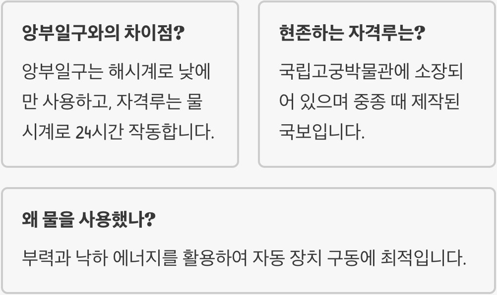 Q. 앙부일구와 자격루는 무엇이 다른가요?