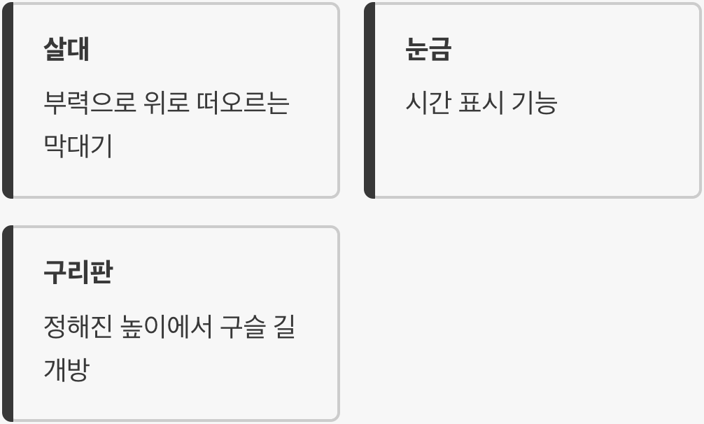 작은 쇠구슬이 굴러떨어지면 통로를 따라 이동하다가, 자신보다 더 큰 쇠구슬을 툭 하고 밀어 떨어뜨립니다. 작은 힘으로 큰 힘을 만들어내는 지렛대 원리를 이용한 것입니다. 이 큰 구슬은 다시 아래로 굴러가서 마침내 시간을 알리는 인형의 팔을 움직이는 장치를 강하게 때리게 됩니다.