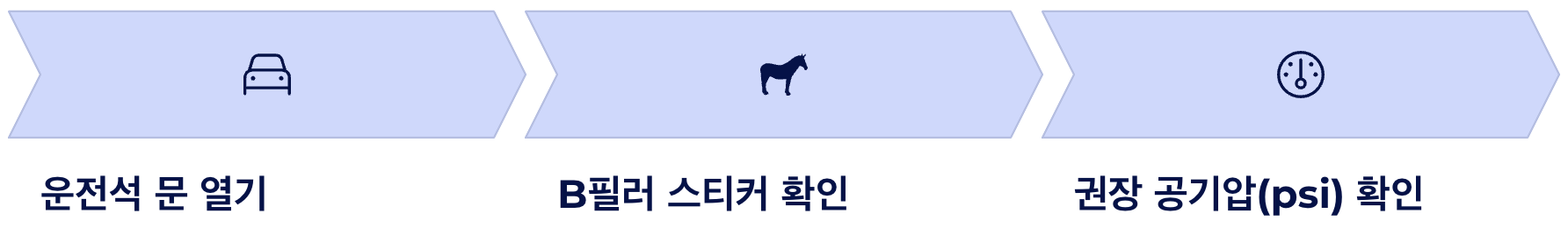 이 수치는 자동차 제조사가 수많은 테스트를 거쳐 연비, 승차감, 제동력, 타이어 수명 등 모든 조건을 고려해 찾아낸 최적의 값입니다. 타이어 옆면에 크게 쓰인 숫자는 해당 타이어가 견딜 수 있는 '최대 공기압'이므로, 절대로 이 수치에 맞춰 주입해서는 안 됩니다. 내 차의 문 안쪽 스티커를 확인하는 것이 가장 정확하고 안전한 해결책입니다.