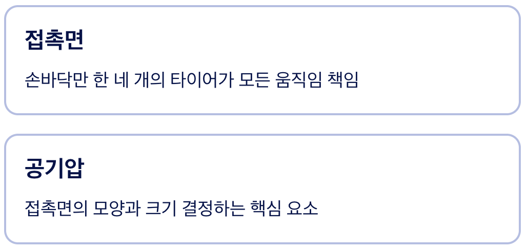 수십, 수백 마력의 강력한 힘을 내는 자동차도 결국 도로와 맞닿는 것은 손바닥만 한 네 개의 타이어뿐입니다. 이 작은 접촉면이 자동차의 모든 움직임, 즉 출발, 정지, 회전을 책임집니다. 타이어 내부의 공기 압력은 이 중요한 접촉면의 모양과 크기를 결정하는 핵심 요소로, 마치 우리 발에 꼭 맞는 신발을 신는 것과 같습니다.