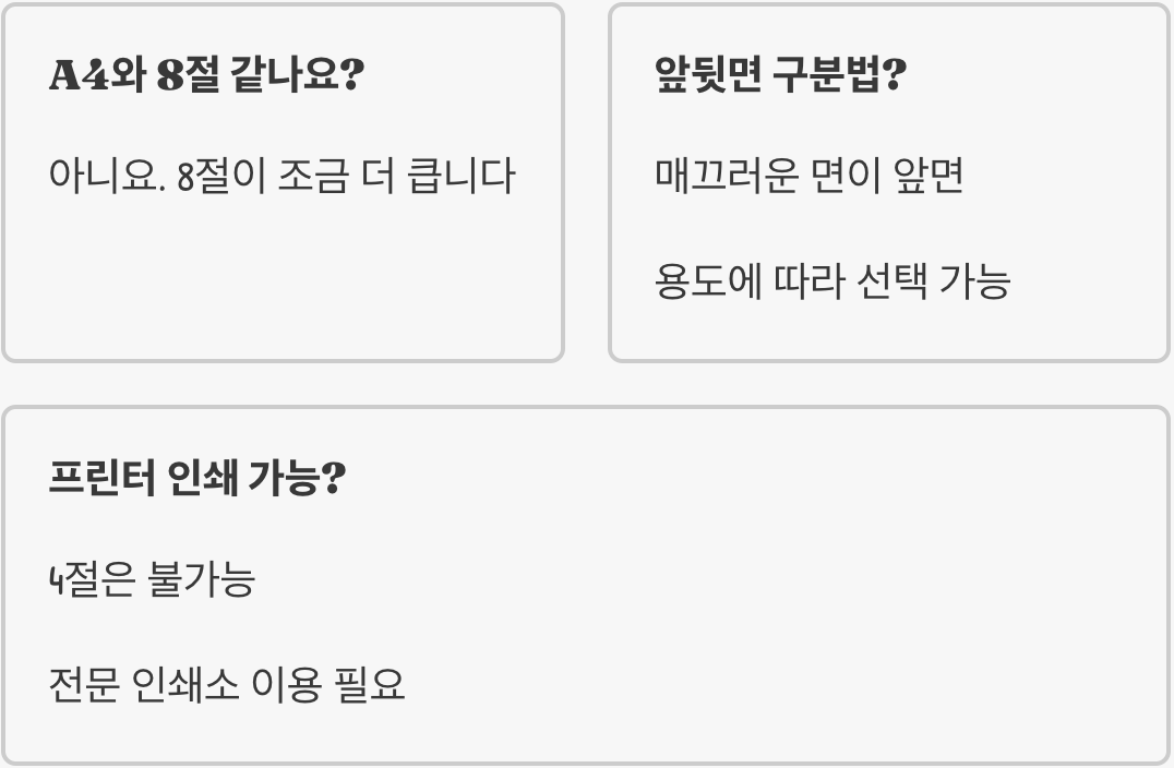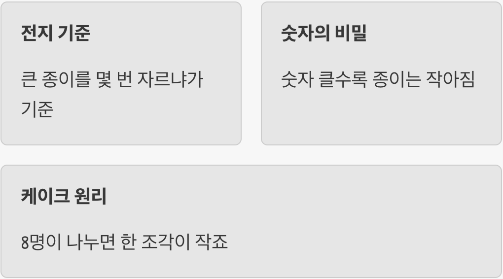 많은 분이 이 원리를 모르고 숫자가 크니까 종이도 클 것이라고 착각해서 8절을 사야 하는데 4절을 사거나, 그 반대의 실수를 저지릅니다. 케이크 한 판을 4명이 나눠 먹는 것과 8명이 나눠 먹는 것을 상상해 보세요. 8명이 나누면 한 조각의 크기가 훨씬 작아지겠죠? 종이도 똑같습니다. 숫자가 클수록 내 손에 들어오는 종이는 작다는 것을 꼭 기억하는 것이 올바른 선택의 첫걸음입니다.