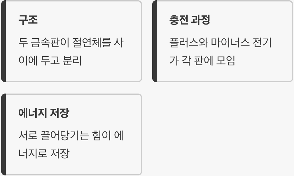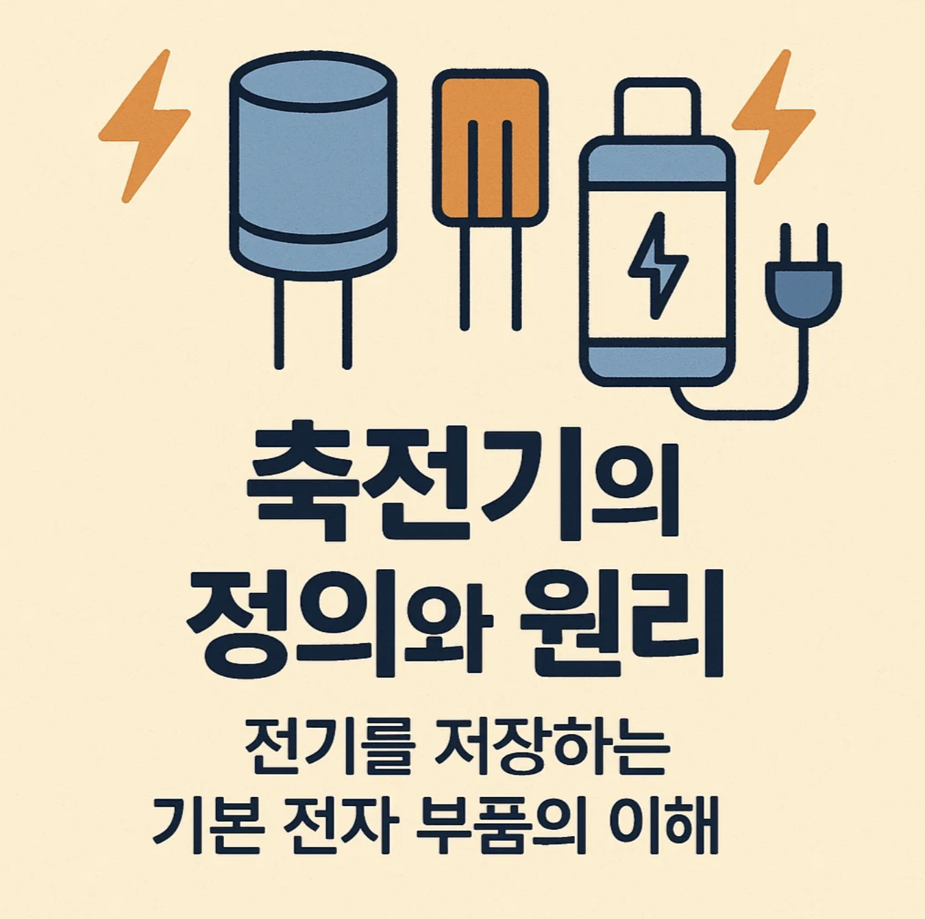 축전기(커패시터)는 전기장을 이용해 전기를 저장하는 소자로, 두 도체판과 유전체로 이루어진 구조가 핵심 원리입니다. - 커패시터 원리와 구조