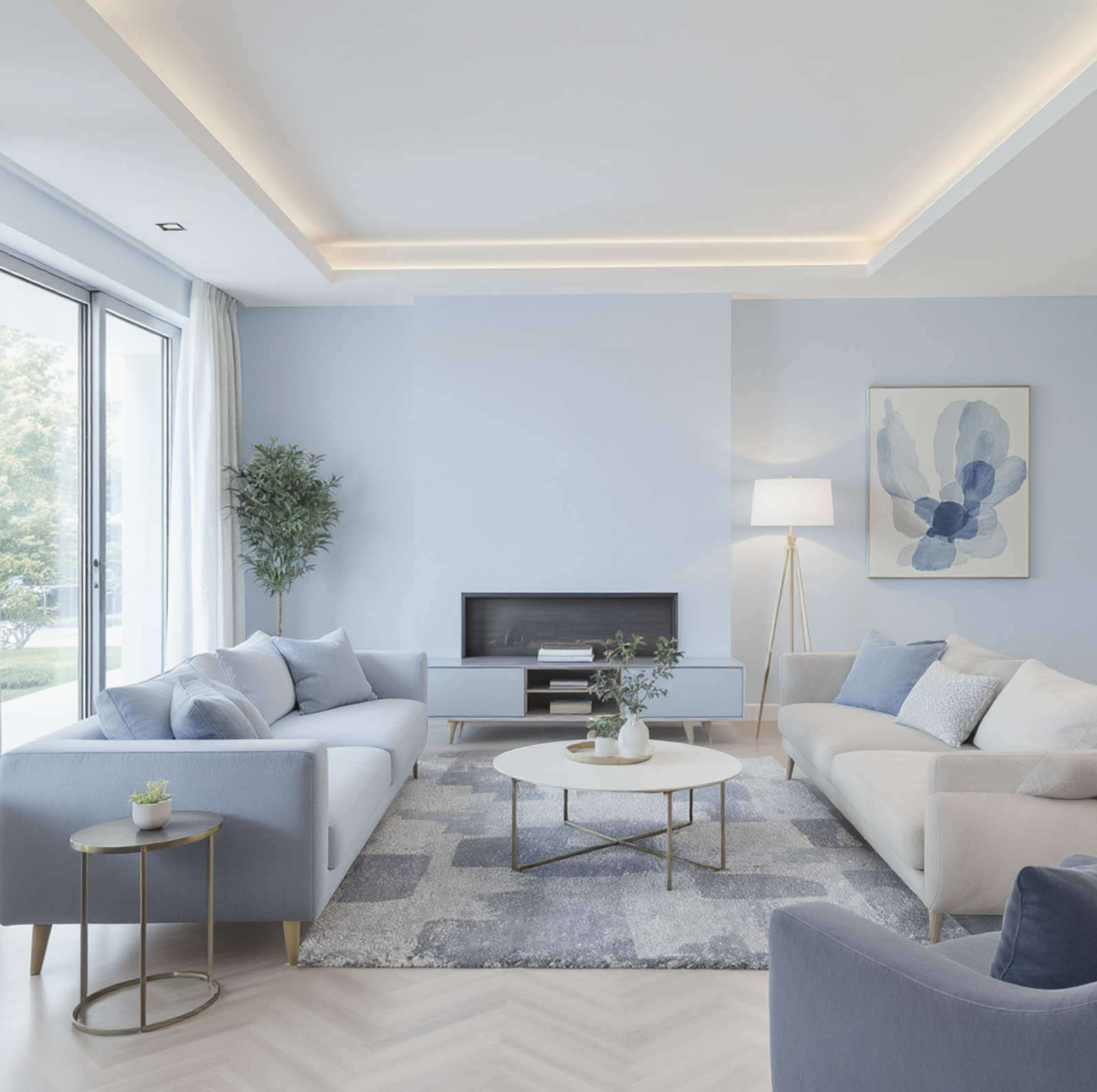 색상은 공간의 분위기와 크기를 좌우하는 가장 강력한 도구입니다. 층고가 낮은 집이라면, 공간을 시각적으로 확장시켜 주는 밝은 색상을 적극적으로 활용해야 합니다. 특히 벽과 천장의 색을 통일하는 것은, 두 공간의 경계를 모호하게 만들어 공간이 하나로 이어지며 더 높아 보이는 효과를 줍니다.