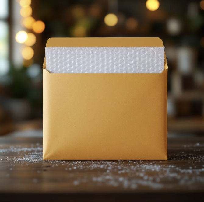 액세서리나 화장품처럼 깨지기 쉬운 물건을 보낼 때는 일명 '뽁뽁이 봉투'라고 불리는 안전봉투가 필수입니다. 겉면은 감성적인 갈색 종이지만, 안쪽에는 에어캡(비닐 방울)이 붙어 있어 외부 충격으로부터 내용물을 안전하게 지켜줍니다. 이 제품을 사용하면 물건을 따로 신문지나 뽁뽁이로 칭칭 감을 필요가 없어 포장 시간이 절반으로 줄어듭니다.