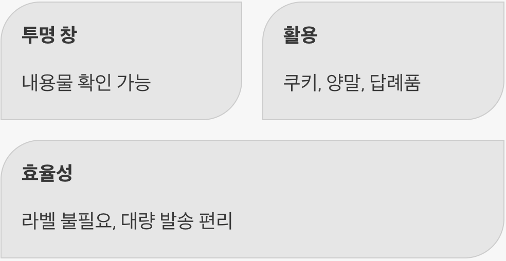 받는 사람의 주소가 적힌 종이를 창문 위치에 맞춰 넣으면 따로 라벨지를 붙일 필요가 없어 대량 발송을 할 때 업무 효율을 엄청나게 높여줍니다. 베이커리 포장이나 답례품을 준비할 때 이 윈도우 형태를 활용해 보세요. 안에 무엇이 들었는지 궁금증을 유발하면서도 시각적인 즐거움까지 동시에 선물할 수 있습니다.