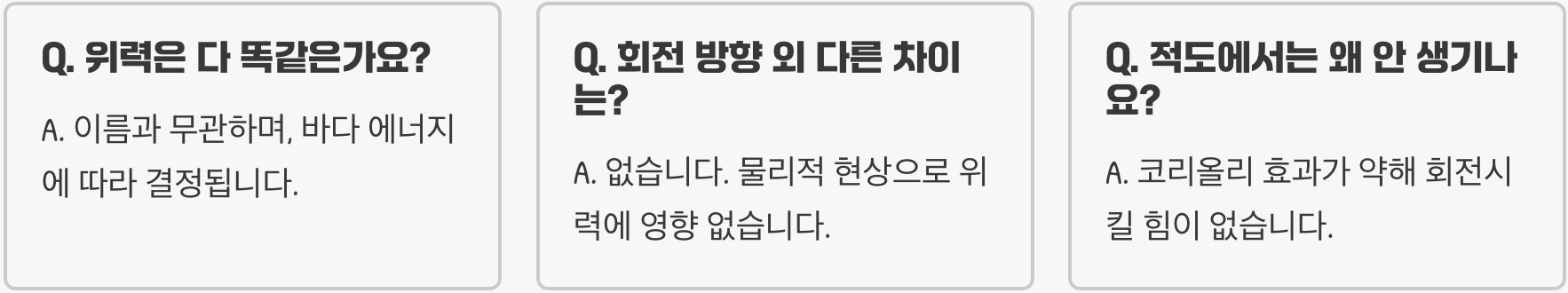 Q. 회전 방향이 반대인 것 외에 다른 차이는 없나요?
