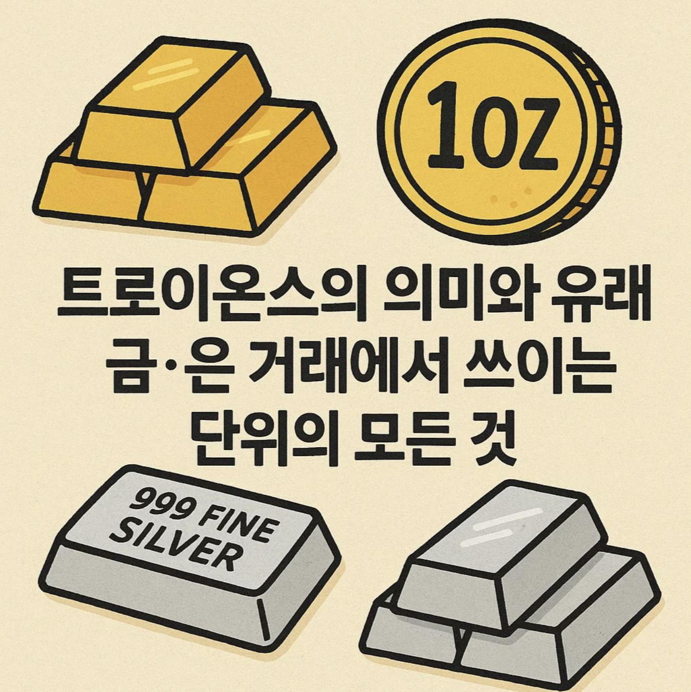 금이나 은 시세를 찾아보면 어김없이 등장하는 낯선 단위, ‘트로이온스(troy ounce)’. 우리는 10g, 100g처럼 깔끔하게 떨어지는 숫자에 익숙한데, 왜 하필 소수점 넷째 자리까지 붙는 31.1035g이라는