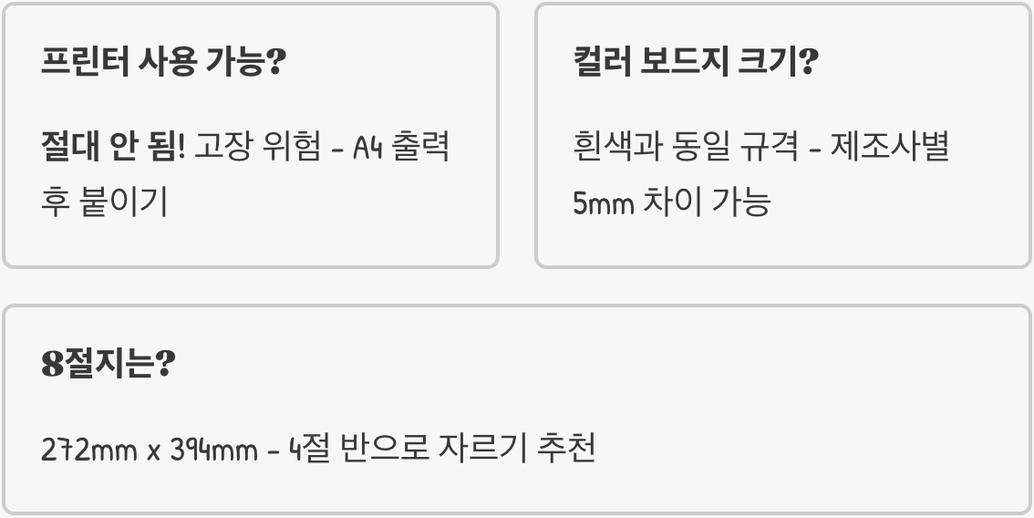 Q. 색상이 들어간 하드보드지는 크기가 다른가요?
