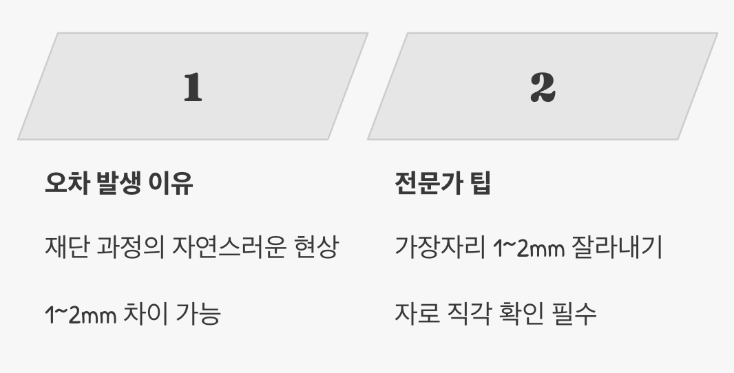 분명히 4절지라고 해서 샀는데, 집에 있는 자로 재보면 1~2mm 정도 오차가 생길 때가 있습니다. 이는 불량이 아니라 종이를 자르는 과정에서 생기는 자연스러운 현상입니다. 기계로 대량의 종이를 자르다 보면 칼날 두께나 밀림 현상 때문에 아주 미세하게 크기가 달라질 수 있습니다. 또한 종이의 습도에 따라 약간의 수축과 팽창이 일어나기도 합니다.