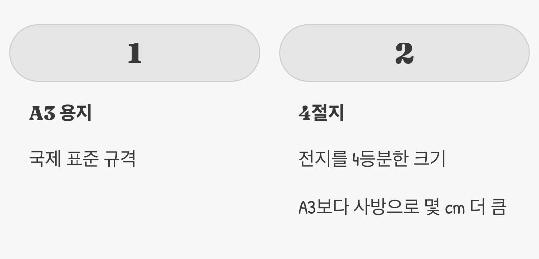 많은 분이 A3 용지와 4절지를 비슷한 크기로 착각하고 혼용해서 사용하곤 합니다. 하지만 이 둘은 엄연히 다른 규격 체계를 가지고 있습니다. A3는 국제 표준 규격이고, 4절은 우리나라에서 쓰는 종이 원지(전지)를 4등분 했다는 뜻입니다. 실제로 대보면 4절지가 A3보다 사방으로 몇 센티미터씩 더 큽니다.