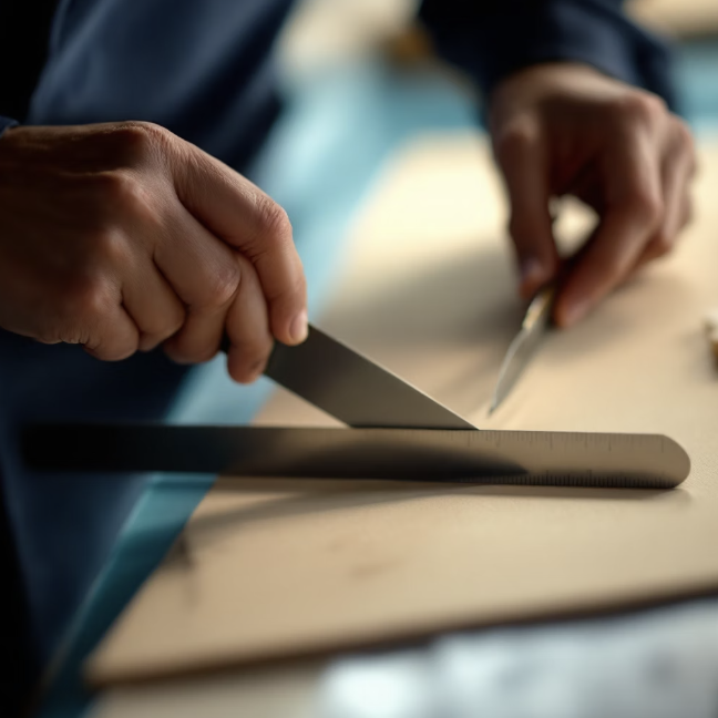 그러므로 정밀한 모형을 만들어야 한다면 종이 가장자리를 믿고 바로 치수를 재서 그리지 마세요. 반드시 자를 이용해서 직각을 확인하고, 가장자리를 1~2mm 정도 잘라내어 반듯한 단면을 만든 후에 제도하는 것이 좋습니다. 이 작은 습관 하나가 나중에 조립할 때 틈이 벌어지지 않게 하는 전문가의 비법입니다.