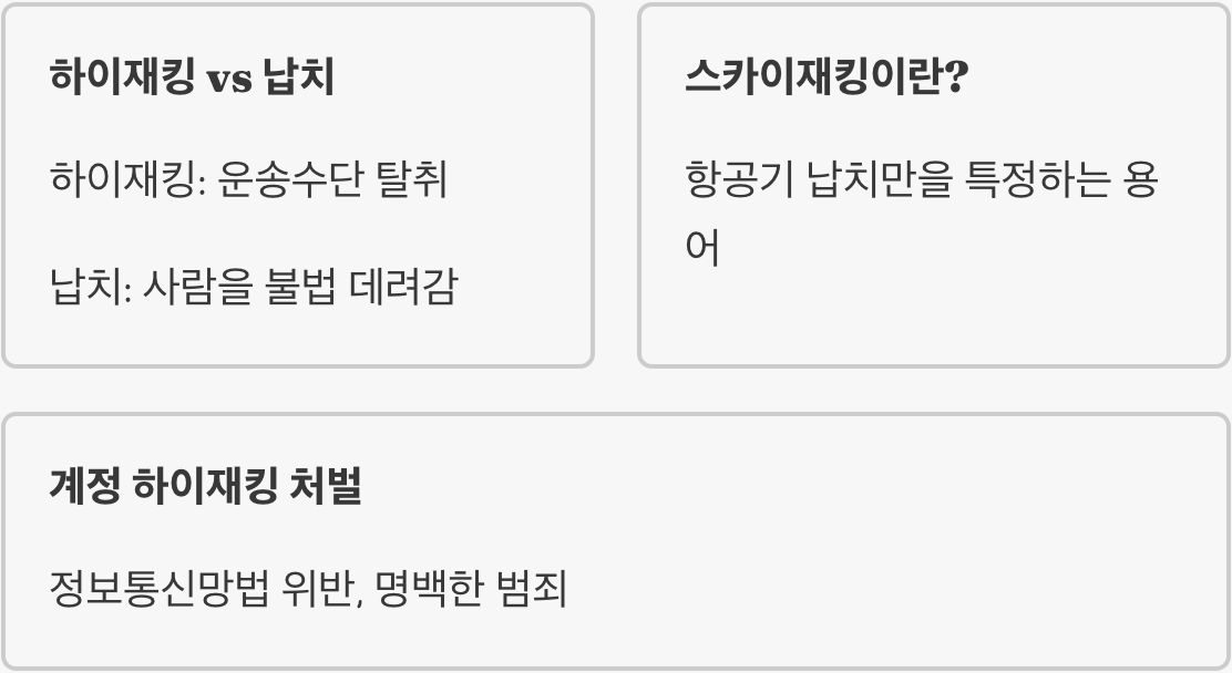 하이재킹의 어원과 현대적 문제점, 안전 관련 이슈를 포함한 해설입니다.