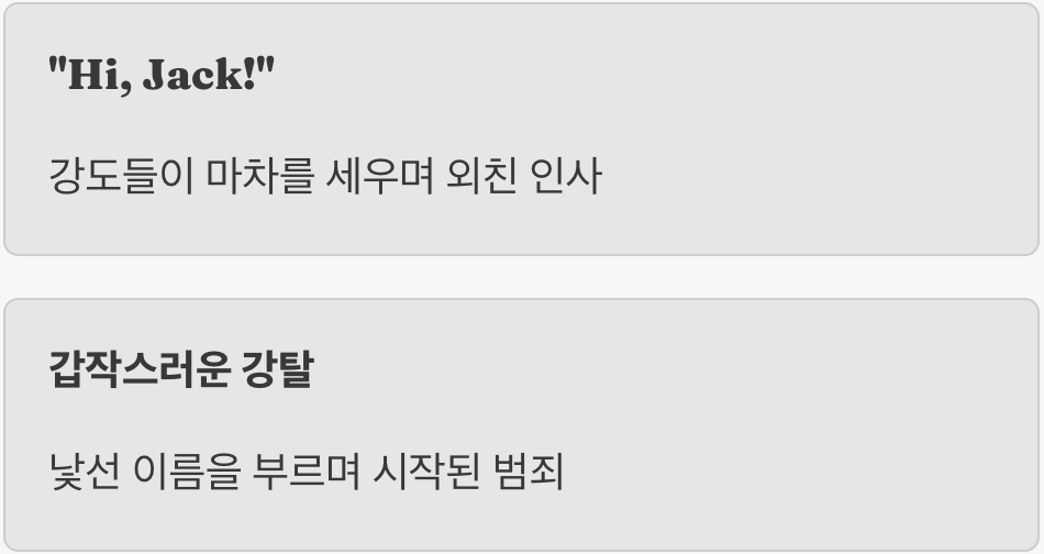하이재킹이라는 단어가 어떻게 생겨났는지에 대해서는 여러 가지 이야기가 있지만, 그중 가장 재미있고 기억하기 쉬운 유래가 있습니다. 바로 과거 미국에서 강도들이 지나가는 마차나 자동차를 세울 때, 운전사의 이름을 모르는 상태에서 흔한 이름인 ‘잭(Jack)’을 부르며 “안녕, 잭! (Hi, Jack!)” 하고 말을 건넨 뒤 강도짓을 했다는 이야기입니다.