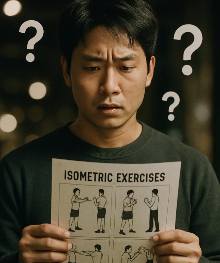 '등척성(Isometric)'이라는 말이 조금 어렵게 들리시나요? 가장 쉽게 설명하면, '관절을 움직이지 않고 근육에 힘을 주어 버티는' 운동을 말합니다. 우리가 흔히 아는 달리기나 아령 들기처럼 근육의 길이가 변하며 움직이는 운동(등장성 운동)과는 정반대의 개념이죠.