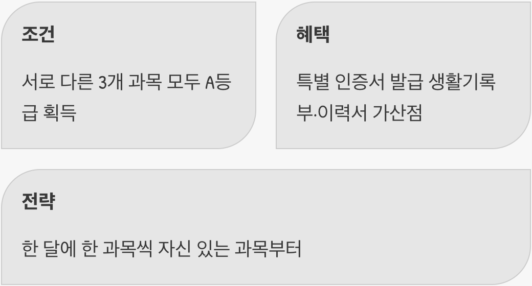 OA 마스터가 되면 나중에 학교생활기록부나 이력서에 아주 멋진 한 줄을 남길 수 있습니다. 한 번에 세 과목을 다 따려고 욕심내지 말고, 한 달에 한 과목씩 차근차근 공략해 보세요. 가장 자신 있는 과목부터 시작해서 하나씩 A등급을 수집하다 보면 어느새 컴퓨터 박사가 되어있는 자신을 발견하게 될 것입니다.