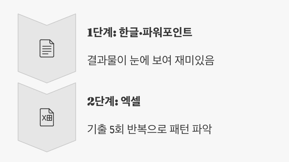 처음 시작하는 분들이 어떤 과목부터 해야 할지 고민을 많이 합니다. 저는 개인적으로 '한글(워드)'이나 '파워포인트'를 먼저 시작하는 것을 추천합니다. 이 두 과목은 결과물이 눈에 바로 보이고, 엑셀처럼 복잡한 계산식이 없어서 초등학생이나 초보자도 재미있게 배울 수 있습니다. 흥미를 먼저 붙이는 것이 포기하지 않는 지름길입니다.
