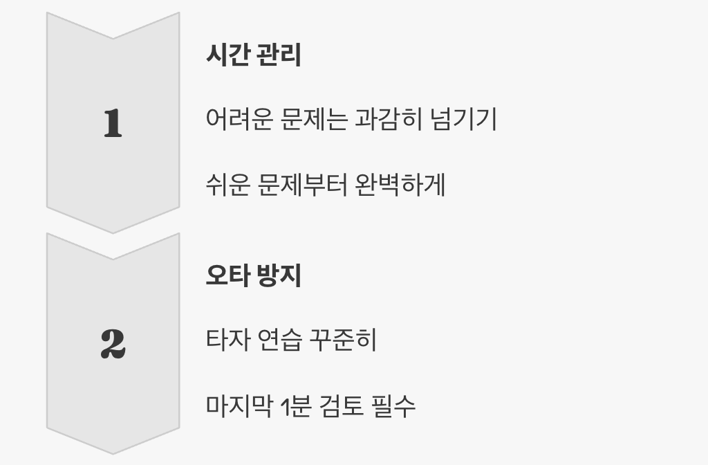 특히 오타를 줄이는 것이 중요합니다. 한글이나 파워포인트 과목은 글자를 입력하는 부분이 많은데, 여기서 오타가 나면 점수가 야금야금 깎이게 됩니다. 평소에 타자 연습을 꾸준히 해서 속도를 높이고, 작성을 마친 뒤에는 반드시 1분 정도 시간을 내어 오타를 확인해 주세요. 이 작은 습관 하나가 여러분을 390점에서 400점대로 끌어올려 줄 것입니다.